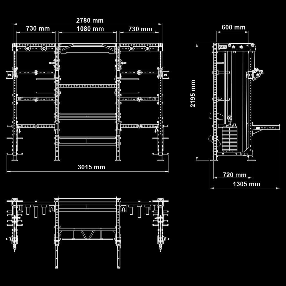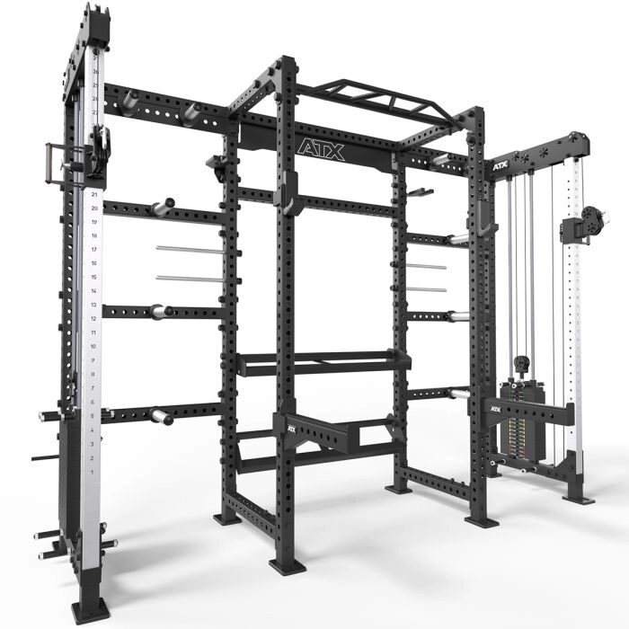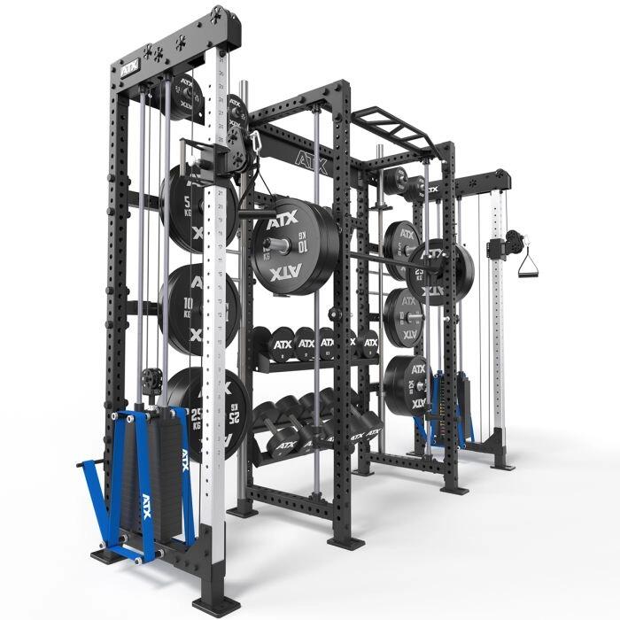Această stație completă permite efectuarea unei game largi de exerciții într-un spațiu compact. Half-rack-ul integrat este echipat cu J-hooks, brațe de siguranță (spottere) rabatabile și o bară pentru tracțiuni. Sistemul de cabluri este dotat cu 2 greutăți de câte 90 kg. De asemenea, sunt incluse pini cu role pentru atașarea benzilor de rezistență, care pot crește semnificativ dificultatea tragerii. Sistemul complex de depozitare oferă spațiu generos pentru discuri, gantere și bare, contribuind la menținerea unei zone de antrenament perfect organizate. Stația poate fi extinsă cu numeroase accesorii suplimentare, precum multipresă, brațe jammer, landmine, dispozitiv pentru genuflexiuni cu centură și altele.