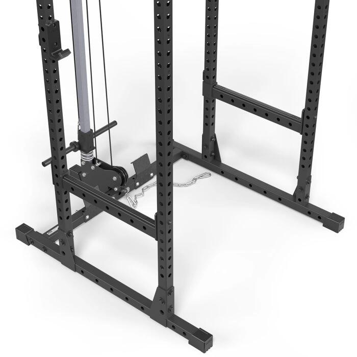 Pachet complet de Power Rack din cea mai mică serie de rack 500 a noastră, cu o înălțime totală de 218 cm, în care Power Rack PRX-520 vine deja cu câteva atribute profesionale, cum ar fi cârligele J-cauciucate super puternice, rabatabile de înaltă calitate și rezistente. Spotter-uri cu protecție de cauciucat, găuri de sistem universale și scale numerice cu laser. Stația de tragere lat este păstrată relativ simplă, dar asigură proprietăți bune de rulare datorită ghidajului de alunecare precis și rolelor cu rulmenți.
