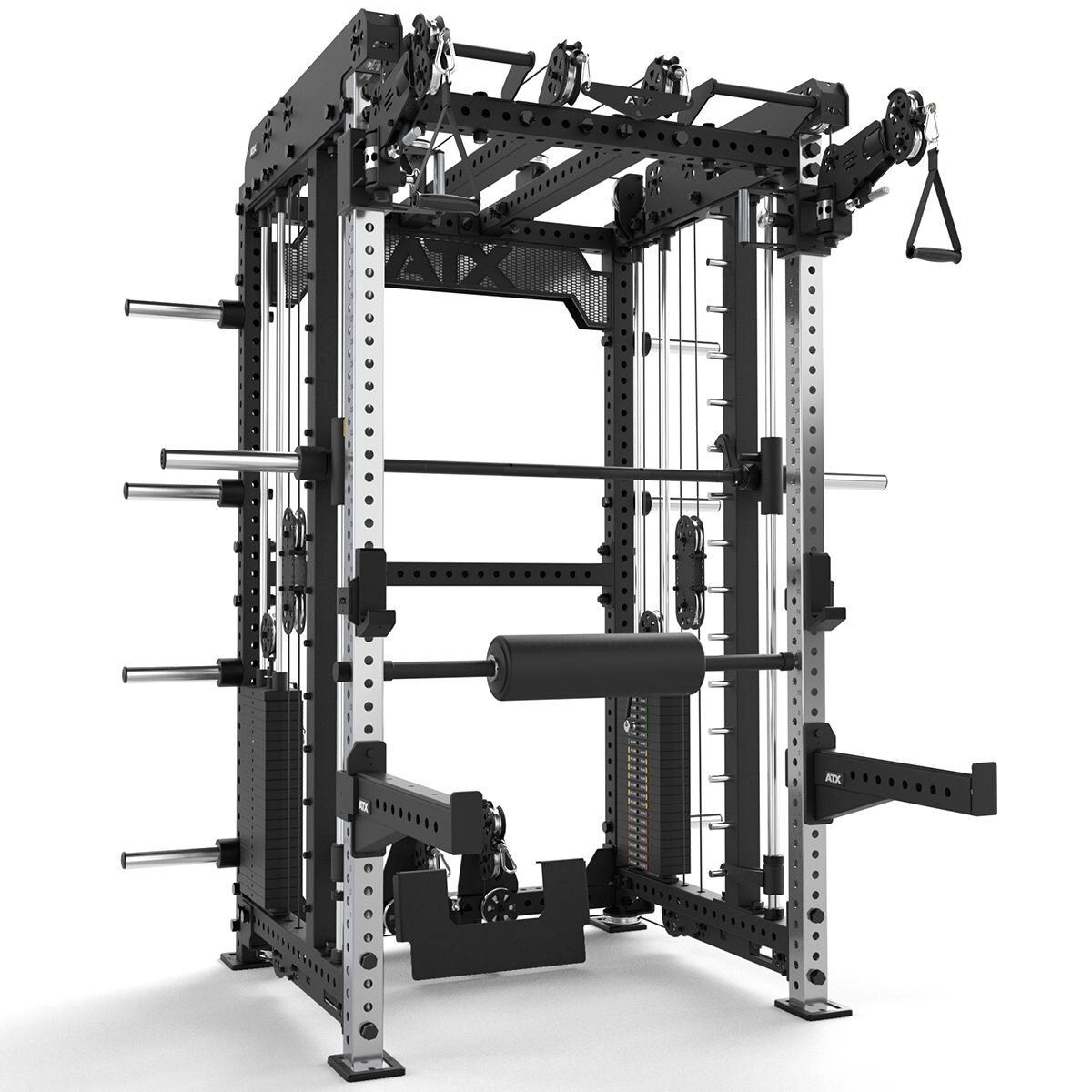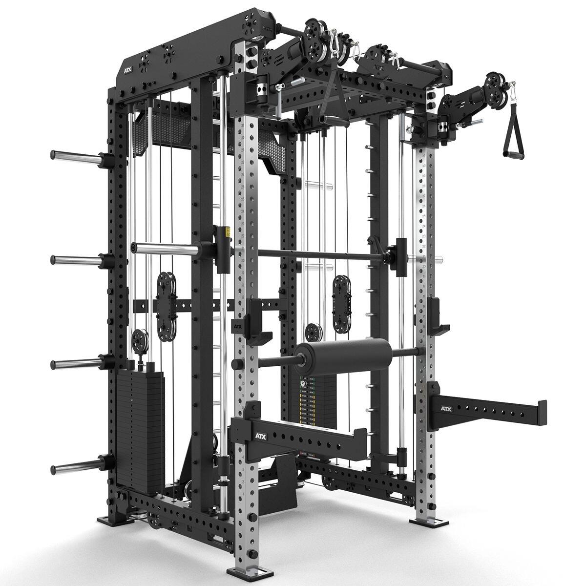 ATX ® Multi Pull Smith Rack MPHR-780 - 2.0 este o stație de forță incredibilă! Un half rack heavy-duty, o presă multifuncțională profesională, tracțiuni la helcometru heavy-duty și o gamă largă de accesorii permit o varietate extrem de cuprinzătoare și profesională de exerciții.