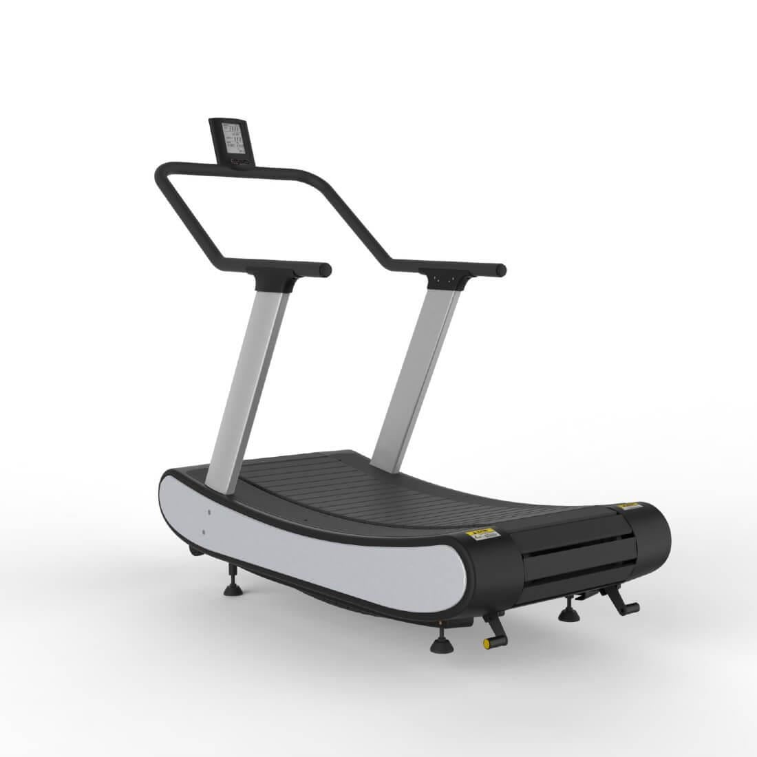 O bandă de alergare autopropulsată curbată, adesea este numită doar bandă de alergare curbată, fiind o bandă de alergare nemotorizată care îți permite să mergi sau să alergi cu un pas natural, alimentând centura pe măsură ce mergi. Cel mai evident avantaj este că necesită mai mult efort decât o bandă de alergare electrică, oferindu-ți un antrenament mai intens. Datorită structurii curbate, atunci când alergi în partea din față a centurii, viteza este accelerată, iar la trecerea spre spate, viteza este decelerată.
