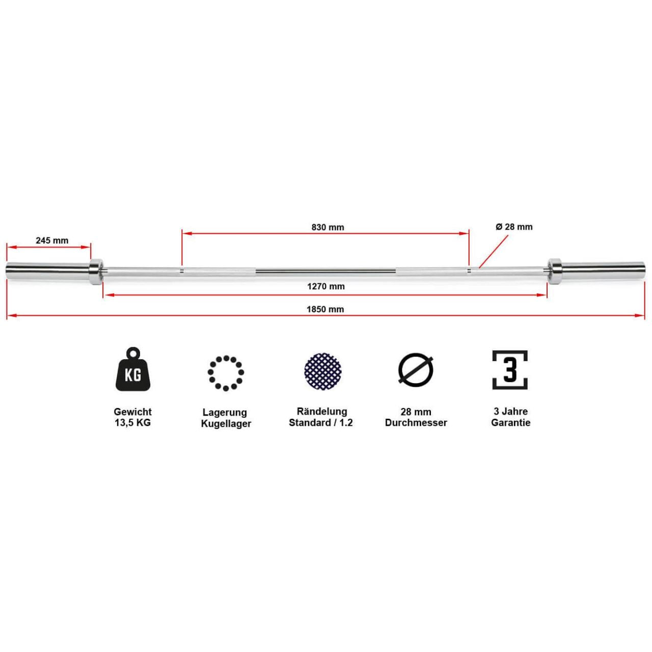 Bara fitness profesionala pentru antrenament IFS, 185 cm, 13.5 kg, Ø 50 mm, crom - Specificatii si caracteristici