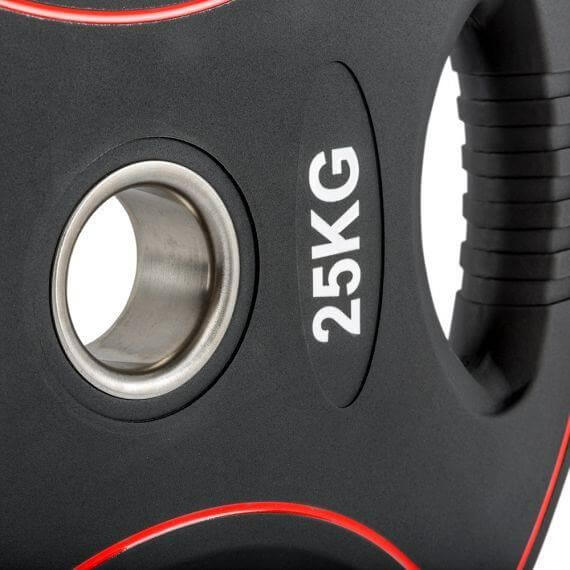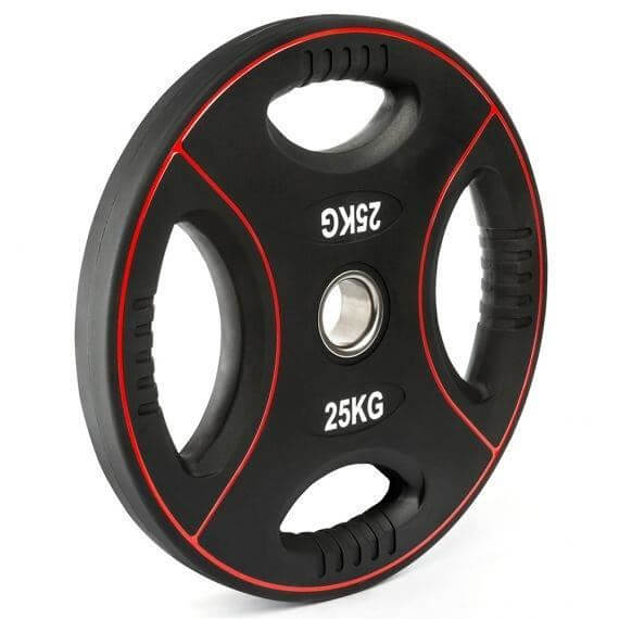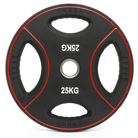 Disc olimpic IFS, poliuretan, 4 mânere de prindere, Ø 50 mm, negru/rosu