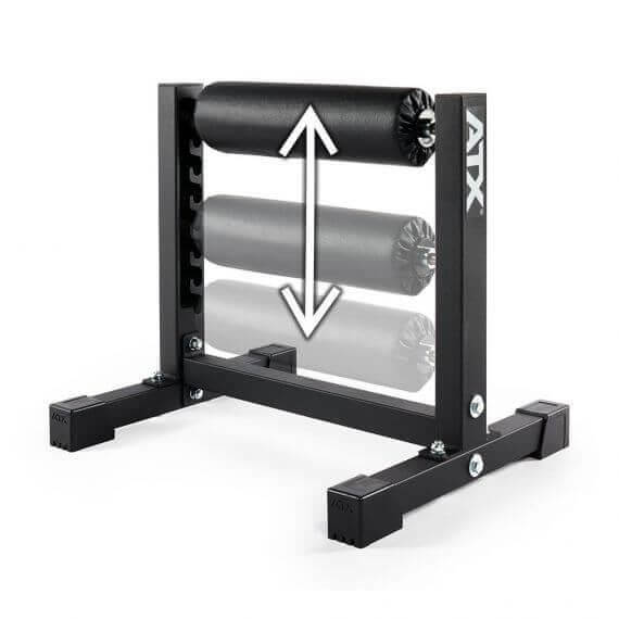 Acest stand se poate ajusta rapid și ușor în înălțime, la 8 poziții diferite. Este echipat cu role tapițate confortabile și este ideal pentru o postură corectă și ergonomică. În loc să ții ocupată o bancă la sală pentru a face Bulgarian Split Squat, poți folosi acest stand, care în plus oferă și opțiunea de a-ți seta poziția stabilă, personalizată și optimă pentru acest tip de exercițiu.