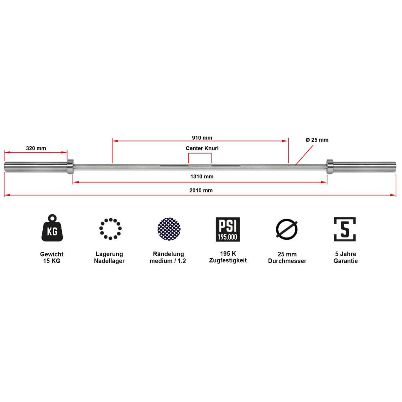 Bara olimpica ATX ® Weightlifting pentru femei, haltera de Competitie, 15 kg, 201 cm