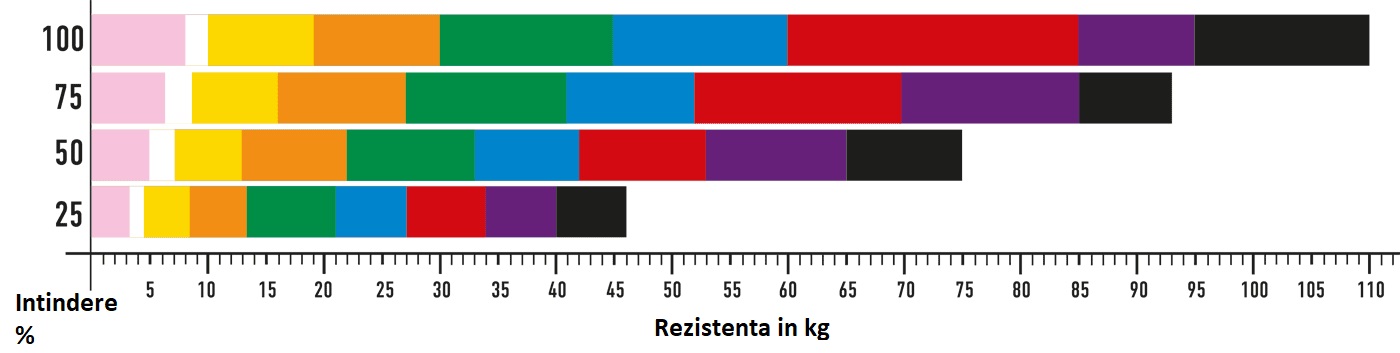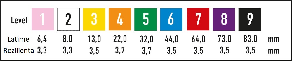 - Reziliență în funcție de banda de rezistență respectivă - vezi tabelul din descrierea produsului