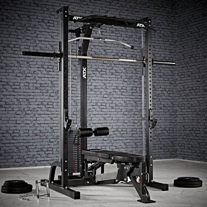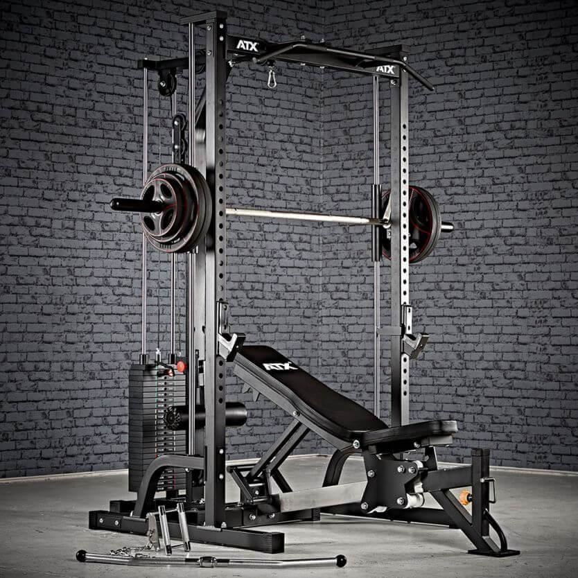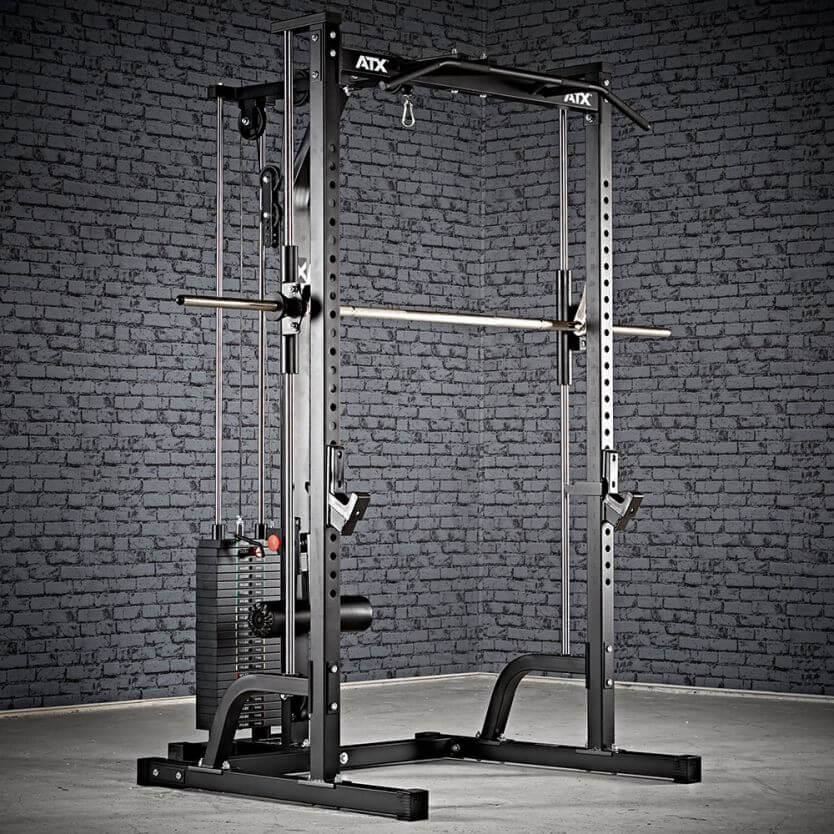 Statie Multi-press cu aparat pentru tractiuni la helcometru. Ideala pentru executarea in siguranta a exercitiilor cu bara libera sau ghidata. Impreuna cu banca ATX Multi-bank si discurile de greutate, aceasta statie este indeajuns pentru creearea unei Home Gym.